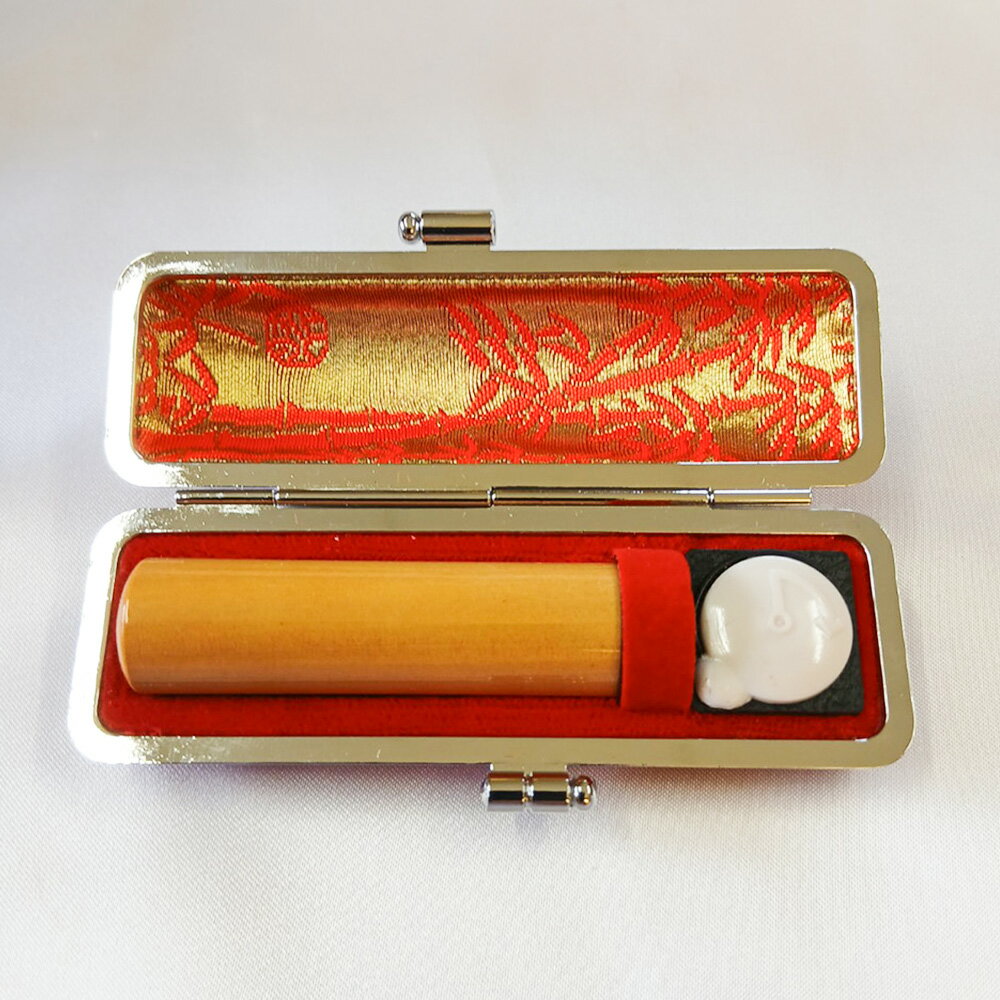 - 【ふるさと納税】甲州印伝ケース付 つげ印鑑実印用 民芸品 工芸品 伝統技術 繊維 国産 天然素材 刻字 姓名 姓 名前 彫る 書体 五書体