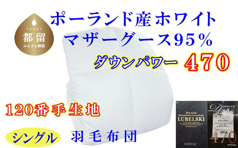 羽毛掛け布団 ポーランド産マザーグース95%ダウンパワー470 羽毛布団シングル150×210cm
