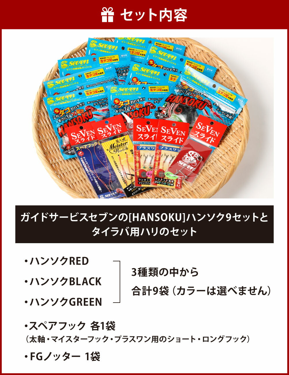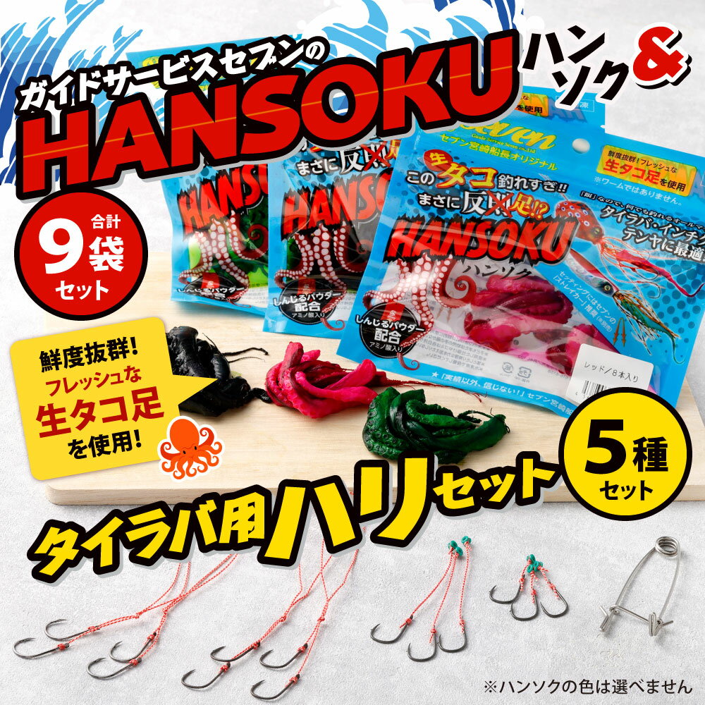 【ふるさと納税】ガイドサービスセブンの[HANSOKU] ハンソク 9セット と タイラバ用ハリ の セット (カラーは選べません) 赤 黒 緑 スペアフック 釣り針 釣針 ショート ロング タコ タコ足 生ダコ 釣り餌 釣具 生餌 釣り 冷凍 福岡県 送料無料