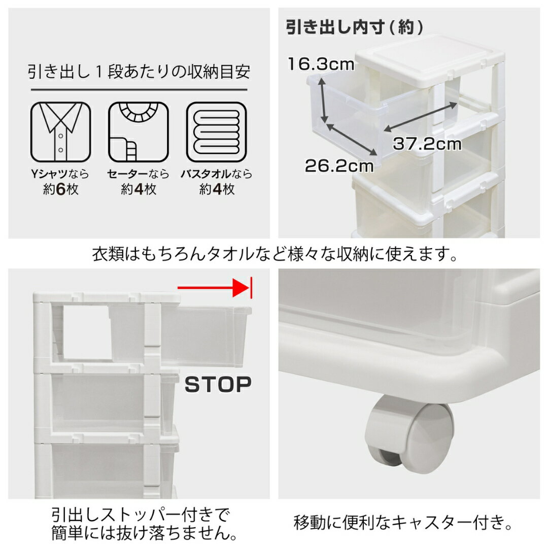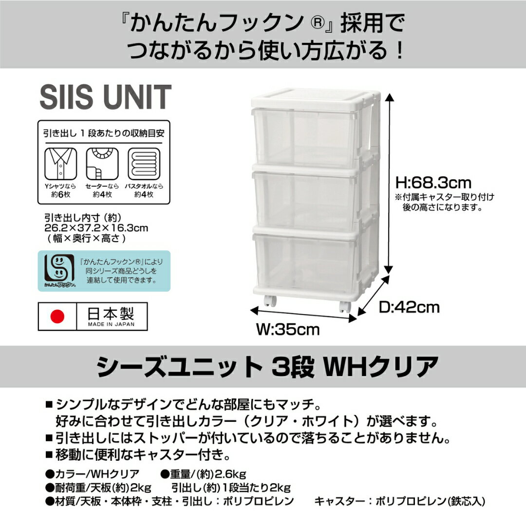 【ふるさと納税】シーズユニット3段 WHクリア 収納チェスト 幅35 奥行42 高さ63.3 引き出し シンプル 衣替え 新生活 リビングチェスト キャスター付き スリム ラック プラスチック 収納チェスト キャスター スリムチェスト 一人暮らし [JEJアステージ] 【010S446】