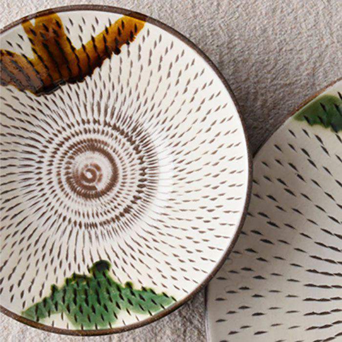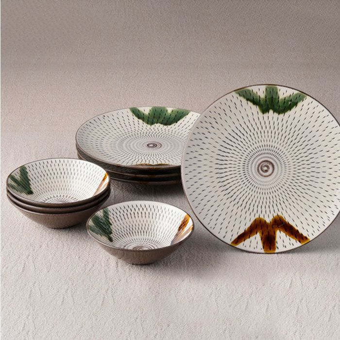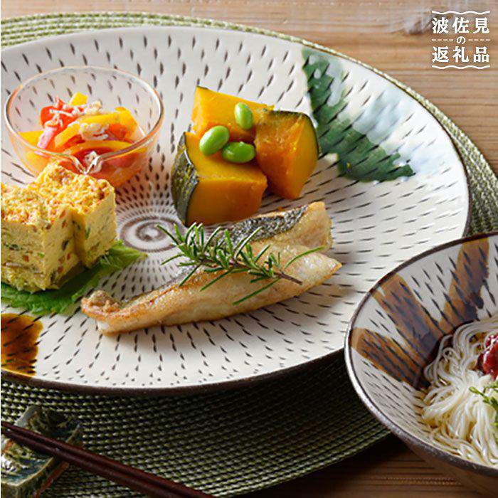 - 【ふるさと納税】【波佐見焼】民芸飛び鉋(かんな)杓掛シリーズ 皿・盛鉢4人セット プレート 取り皿 食器 食器 皿 【利左エ門窯】 [QB07]