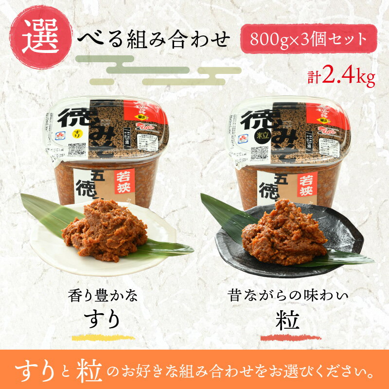 【ふるさと納税】選べる 五徳みそ 800g×3個セット 計2.4kg 味噌 味噌汁 すり味噌 粒味噌 [Y-040003]