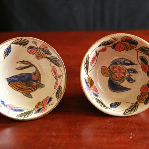 - 【ふるさと納税】【陶芸工房ふじ】4寸マカイ1枚焼き(ハイビスカス・カメ)と(ハイビスカス・クジラ)セット