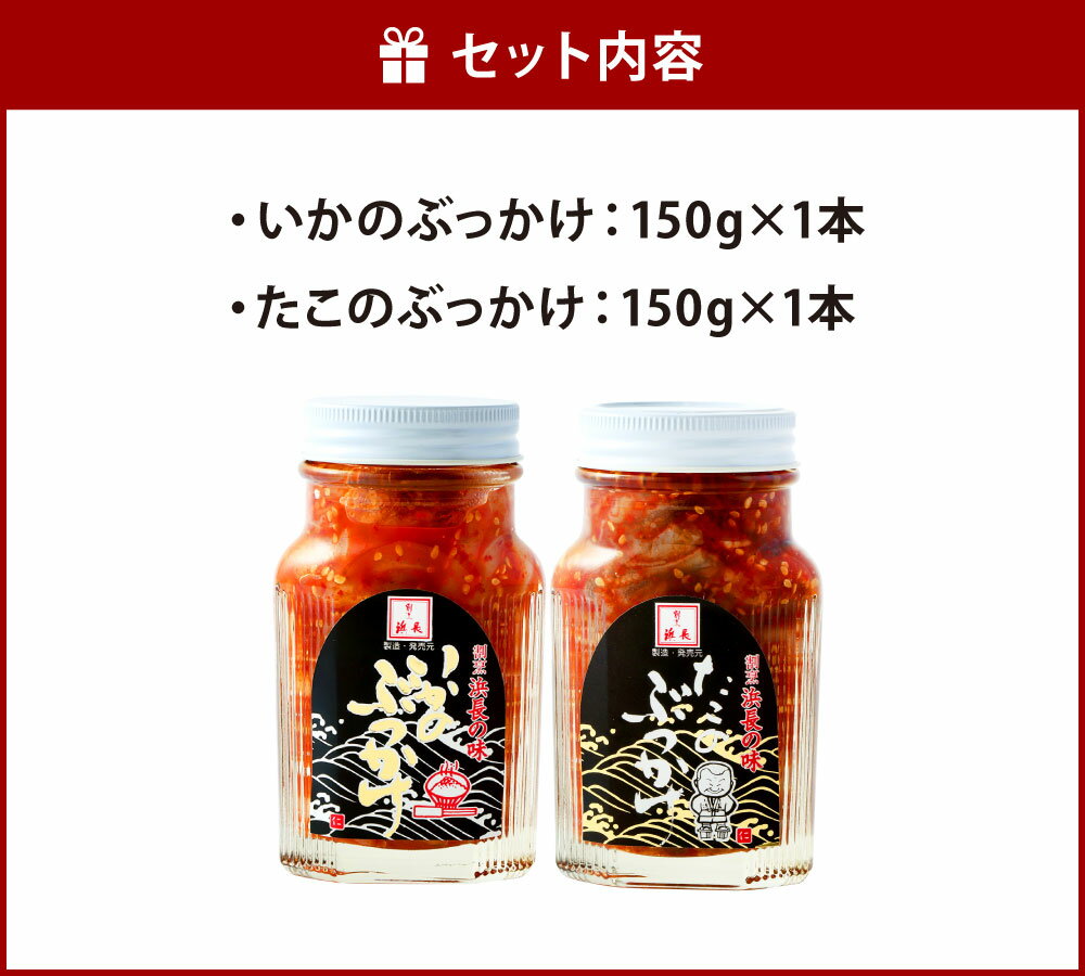 - 【ふるさと納税】浜長 いかのぶっかけとたこのぶっかけ 2本セット 各150g 2種類 食べ比べ いか たこ イカ 蛸 ぶっかけ ご飯のおとも ゴマ おつまみ あて 肴 瓶 冷凍 送料無料