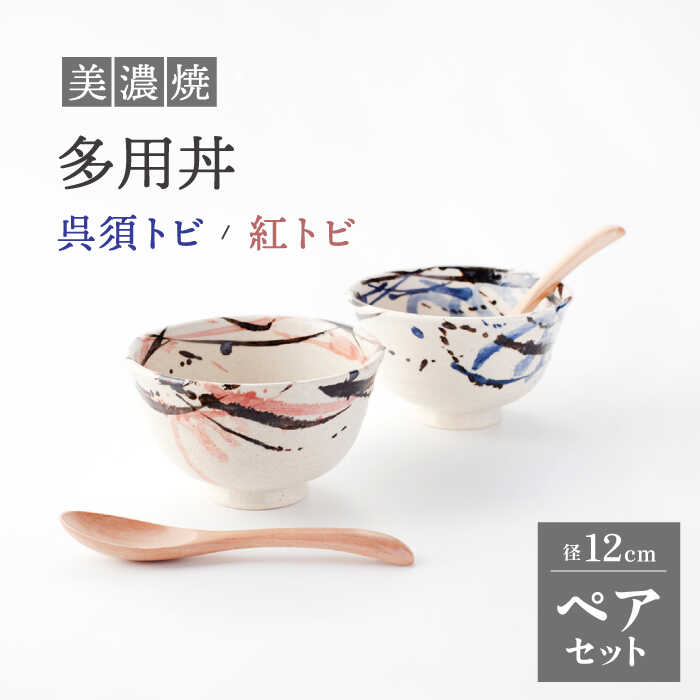 【ふるさと納税】【美濃焼】多用丼 ペアセット 呉須トビ/紅トビ【好山窯】食器 ご飯 麺鉢 [MFU003]