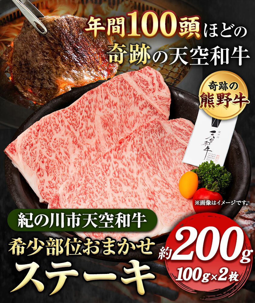 【ふるさと納税】熊野牛 紀の川天空和牛 希少部位おまかせステーキ 約200g(約100g × 2枚) 有限会社松牛《30日以内に発送予定(土日祝除く)》希少部位 黒毛和牛 牛 牛肉 牛肉ステーキ ステーキ 和歌山県 紀の川市