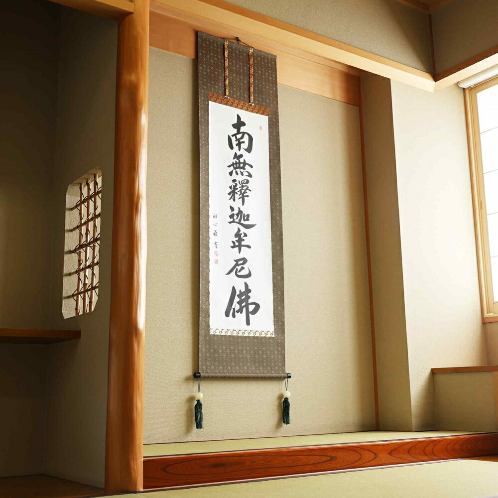 【ふるさと納税】掛軸 「釈迦名号」 松波祥堂 尺五立 掛け軸 縦 190cm × 54.5cm | 手描き 専用桐箱付き 日本 伝統 美術品 岐阜県 北方町