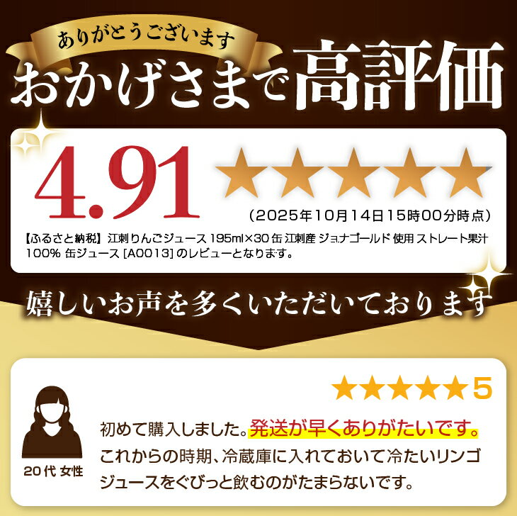 - 【ふるさと納税】 江刺りんごジュース 195ml×30缶 江刺産ジョナゴールド使用 ストレート果汁100%[A0013]
