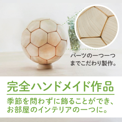 - 木製サッカーボール【中】(直径約17.5cm) ヒノキ台座付き インテリア 飾り ひのき(BH006)