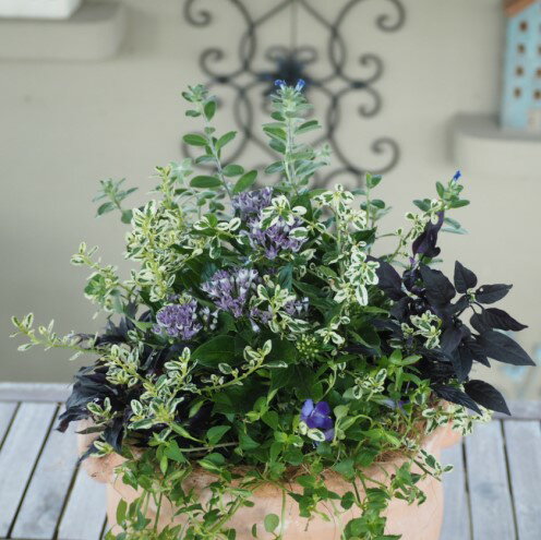 - 【ふるさと納税】植物 寄せ植え 季節のお花 ブルー系 つぼ丸型 25cm ガーデニング 花 【朝倉市】