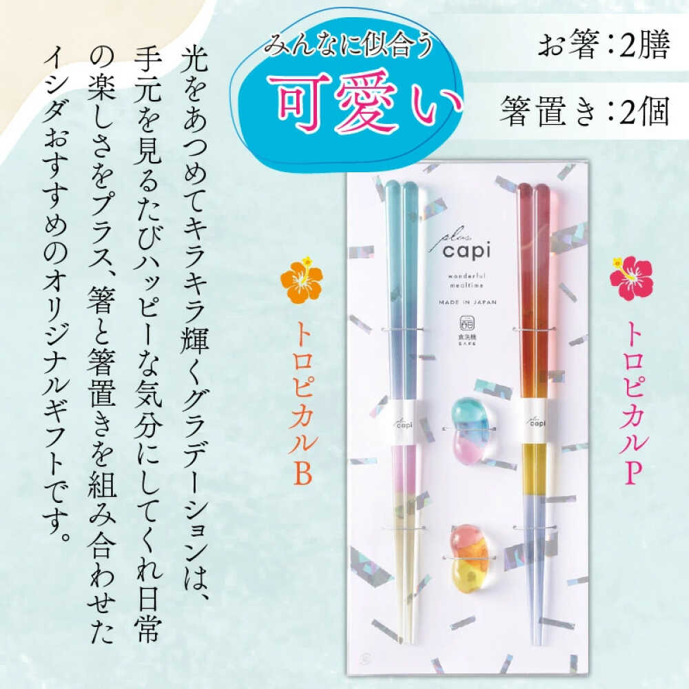 【ふるさと納税】キャピギフト トロピカル B×P / 箸 お箸 おはし はし ギフト かわいい キラキラ 箸置き 日用品 日本製 箸 セット 伝統工芸品 日用品 食洗器対応 食洗器 おしゃれ カラフル 新年 新しいお箸 新生活 新生活準備 2色 大人 ペア 2膳 送料無料 [A-083012]