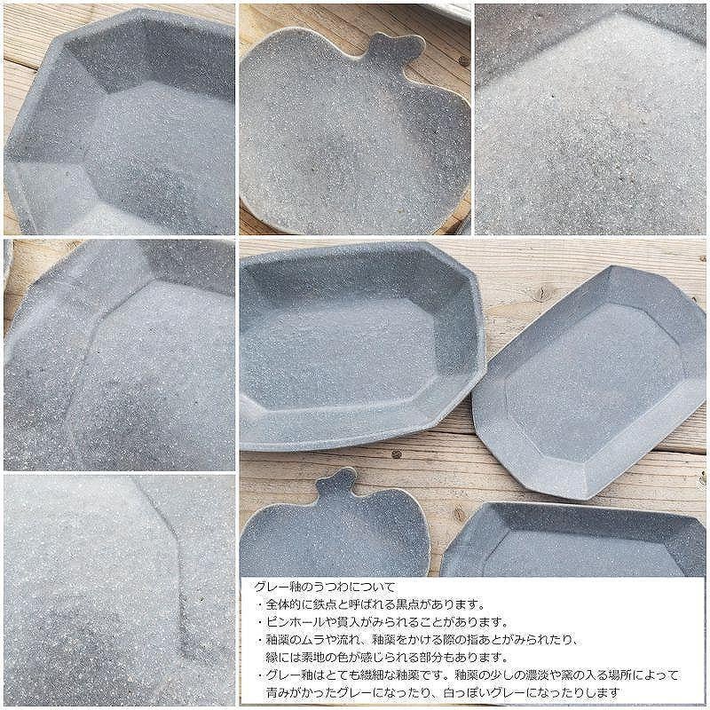- 信楽焼 八角プレート(小) グレー釉 2枚セット