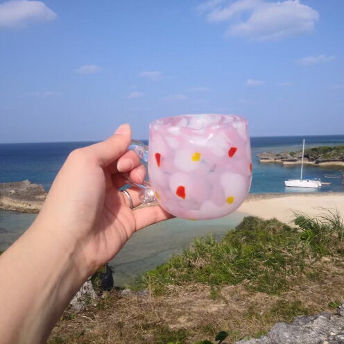 【ふるさと納税】【RYUKYU GLASS WORKS 海風】取っ手付きハート型グラス(花あかり)
