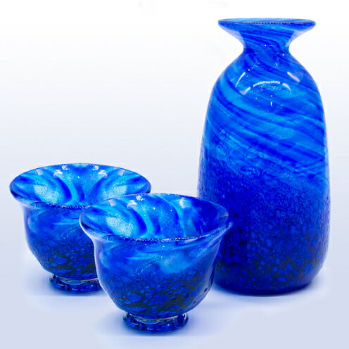 - 【ふるさと納税】【琉球ガラス】源河源吉 とっくりとぐいのみ2個セット(コバルト)