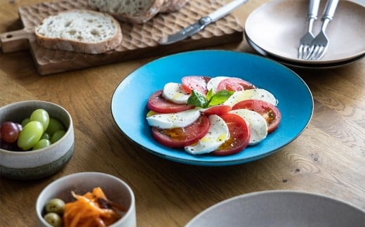 - 【瑞光窯-ZUIKOU-】プレート L (ターコイズブルー/青) 大皿 ワンプレート 食器 陶磁器 シンプル うつわ 京都