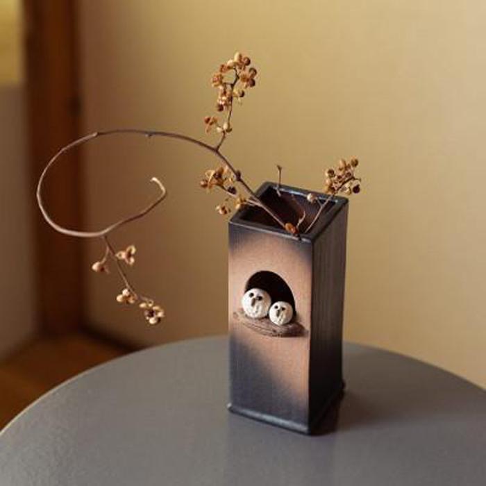 - 【ふるさと納税】【信楽焼・明山】ふくろうペア角花入hc-21
