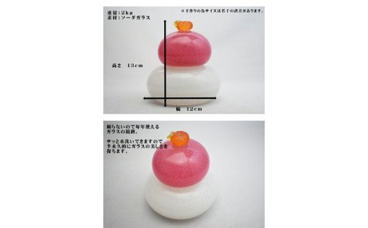 - 【ふるさと納税】おめでたい紅白鏡餅(大)KM-N5【粋工房】_HA1187 送料無料毎年繰り返し使える便利なガラス製の鏡餅 紅白 縁起物