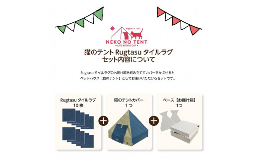 - Rugtasu ラグタスタイルラグ てくてく肉球10枚&猫のテント アウトドアデザインネイビーセット