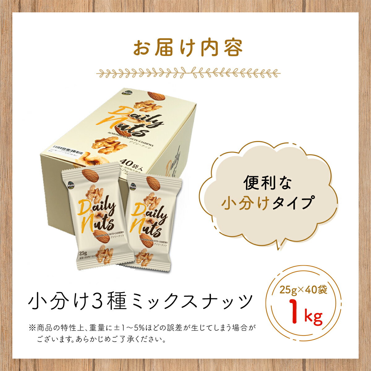 小分け3種ミックスナッツ 1kg(25g×40袋) / おやつ 栄養 送料無料 群馬県