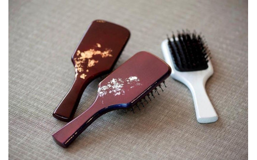 - 漆塗り天然豚毛パドルブラシ 箔青(大)
