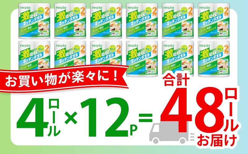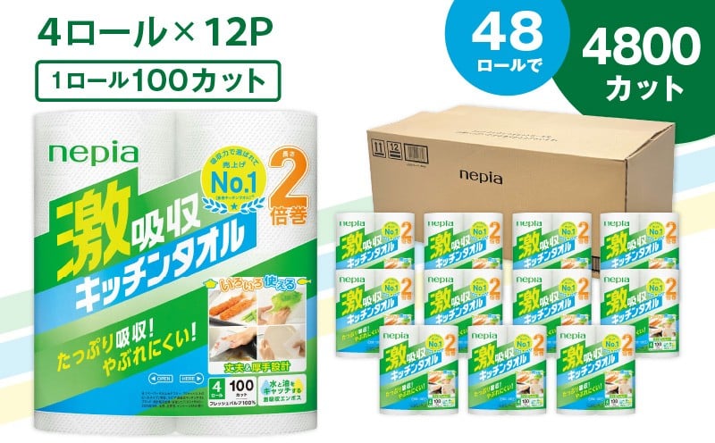 - 【A012】紙のまち苫小牧 王子ネピア 激吸収 キッチンタオル 100 (48ロール) T001-001