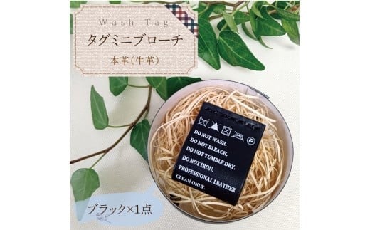- Wash Tag タグミニブローチ ブラック【ミニブローチ ブローチ 本革 数量限定 手作り 革製品 アクセサリー 水戸市 茨城県】(AF-5)