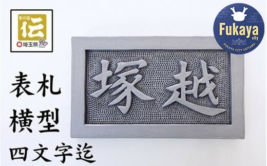 - 手彫りオリジナル表札【横型】鬼瓦師謹製『武州深谷』 【11218-0205】