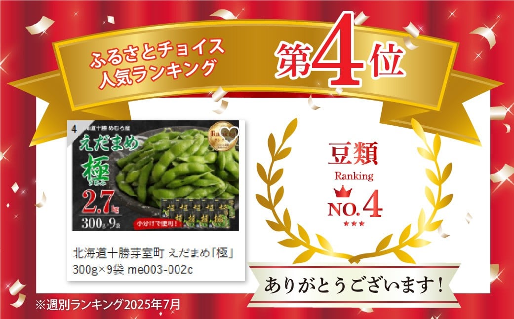 北海道十勝芽室町 えだまめ「極」300g×9袋 me003-002c