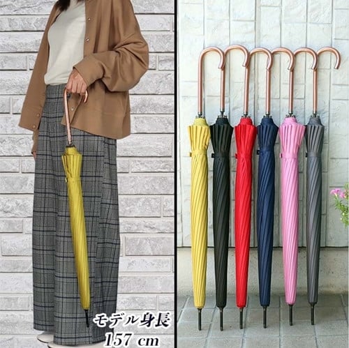 レディース雨傘 長傘 富士絹無地 16本骨 手開き 日本製 レッド 176401 / まちづくり観光振興機構 モダン 高級感 奈良県 田原本町