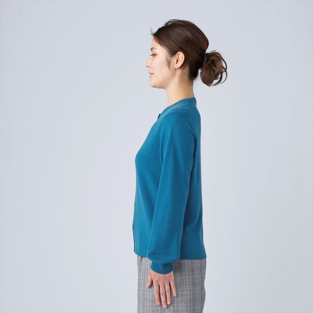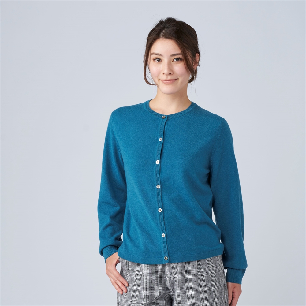 - 日本製 カシミヤ100% レディース クルーカーディガン ダークグリーン Sサイズ [2669]