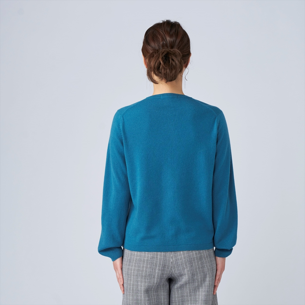 日本製 カシミヤ100% レディース クルーカーディガン ダークグリーン Sサイズ [2669]