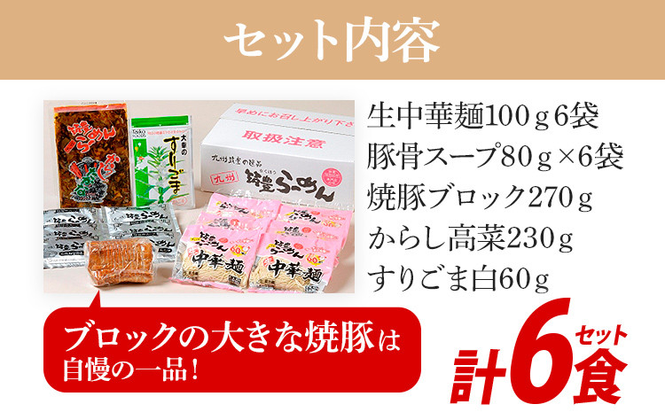 焼豚高菜生ラーメン とんこつ 6食 セット 中華麺 辛子高菜 スープ 国産 焼豚 ごま 筑豊らーめん 冷蔵 送料無料