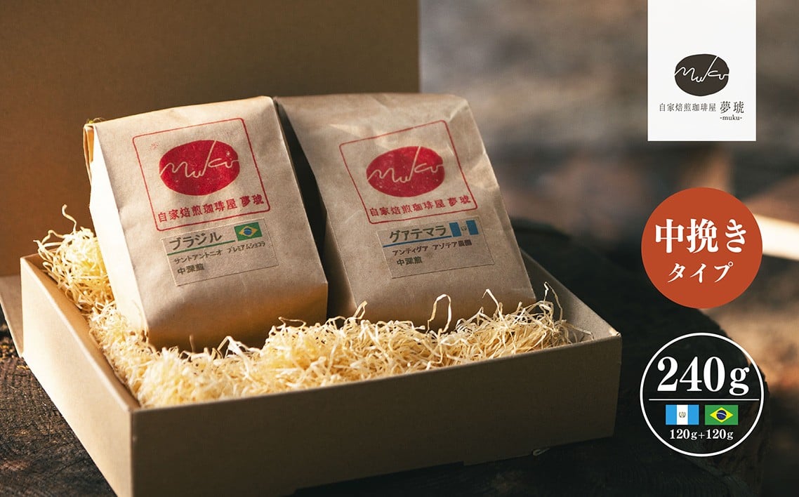 - No.1020 府中から世界に発信できる店を【自家焙煎珈琲屋 夢琥】中挽豆2点セット / コーヒー豆 ブラジル グアテマラ 高品質 フレーバー感 後味の甘さ 広島県