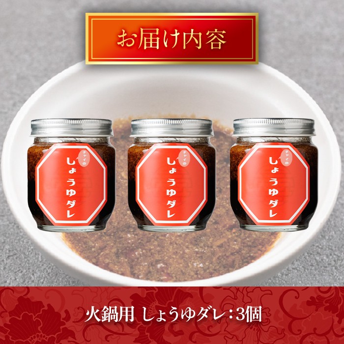 - 火鍋付けダレ(3個)火鍋 中国料理 中華 鍋 しょうゆダレ 醤油【114100200】【HotPot Chai】