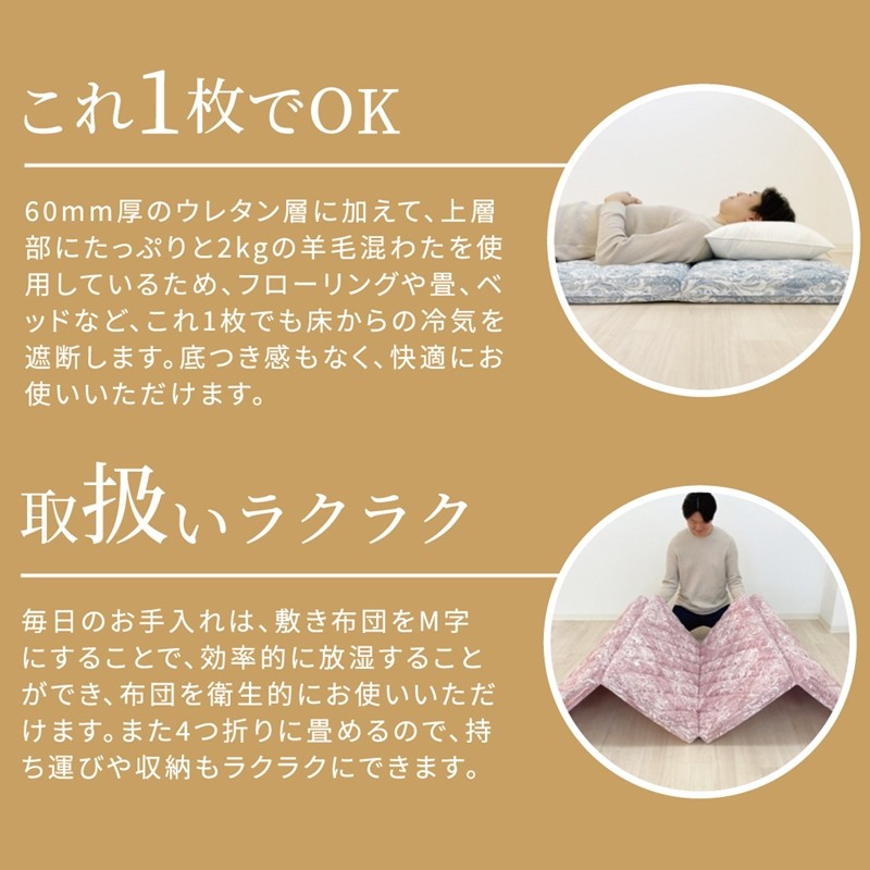 便利な 四つ折り 敷ふとん シングル 丁度いい硬さ ミディアム K0427H01-4SA [5023-5025]