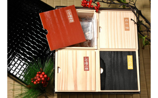 高級南高梅食べ比べ4種計1kg入 紀州塗箱 網代模様仕上 【SW91】
