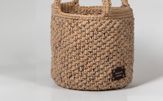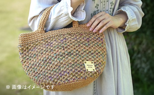 - 手編み 麻紐かごバック 大サイズ 山辺ニット残糸入り ao-kbzxb