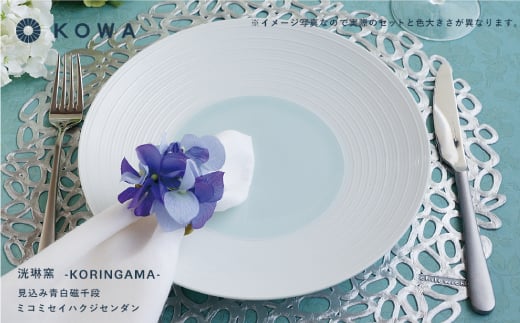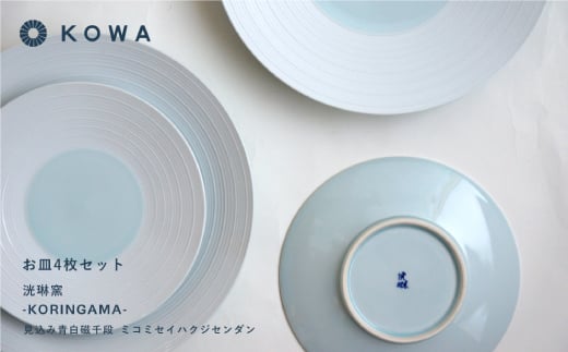 - 【波佐見焼】見込青白磁千段 お皿 4枚セット 小皿 大皿 食器 皿 【光和陶器】 [SC22]