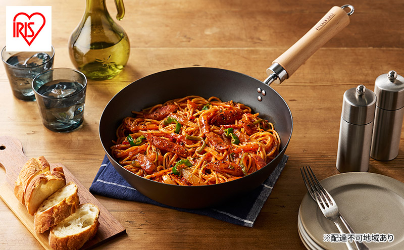 - フライパン 鉄フライパン 28cm アイリスオーヤマ SCW-28 炒め鍋 鉄 IH対応 ih ガス ガス火 鉄のフライパン 鉄製 木製ハンドル 空焚き不要 お手入れ簡単 木 持ち手 木製取っ手 木柄 調理器具 キッチン ブラック