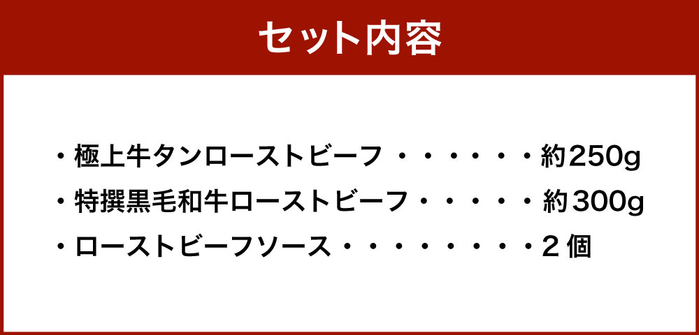 - 【ふるさと納税】極上牛タン ローストビーフ 約250g・特撰黒毛和牛 ローストビーフ 約300g 詰合せ たわら屋 計約550g 牛タン 黒毛和牛 牛肉 和牛 肉 お肉 ソース入り ソース付き 食品 惣菜 おかず おつまみ 詰め合わせ セット お取り寄せ 静岡県 菊川市 送料無料