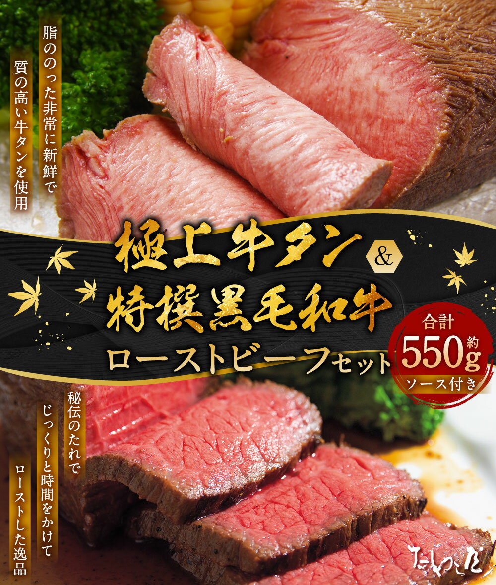 【ふるさと納税】極上牛タン ローストビーフ 約250g・特撰黒毛和牛 ローストビーフ 約300g 詰合せ たわら屋 計約550g 牛タン 黒毛和牛 牛肉 和牛 肉 お肉 ソース入り ソース付き 食品 惣菜 おかず おつまみ 詰め合わせ セット お取り寄せ 静岡県 菊川市 送料無料