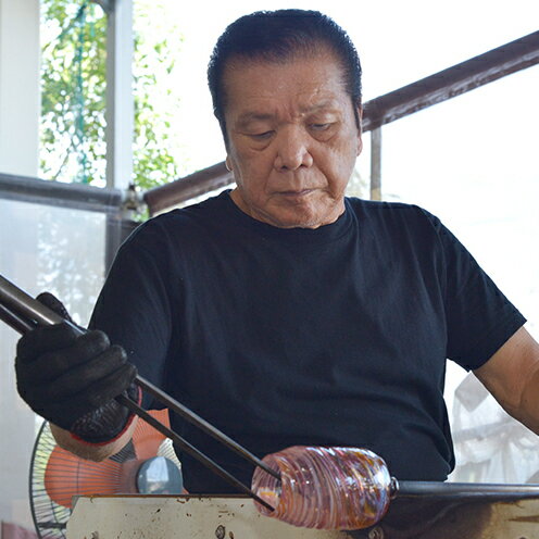 【ふるさと納税】【琉球ガラス】源河源吉 海の雫 水色(ロック2個セット)