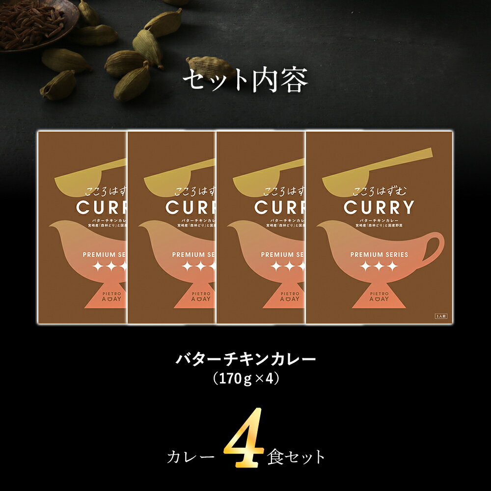- 【ふるさと納税】ピエトロ バターチキンカレー 4食セット 4人前 宮崎県産銘柄鶏 森林どり 国産野菜 レトルト チキンカレー 送料無料 メール便