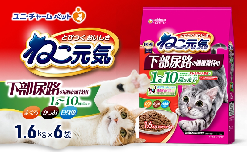 ねこ元気 下部尿路の健康維持用 1歳~10歳頃まで まぐろ・かつお・白身魚入り 1.6kg×6袋 [№5275-0482]