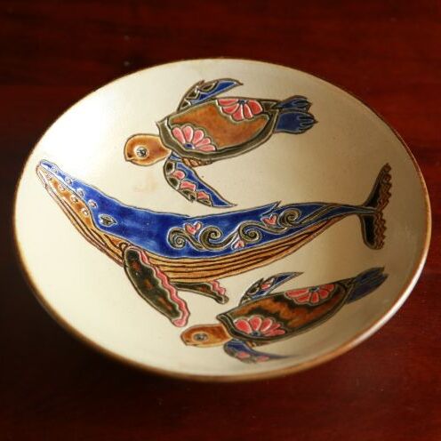 - 【ふるさと納税】【陶芸工房ふじ】7寸皿(クジラ・カメ)1枚焼き