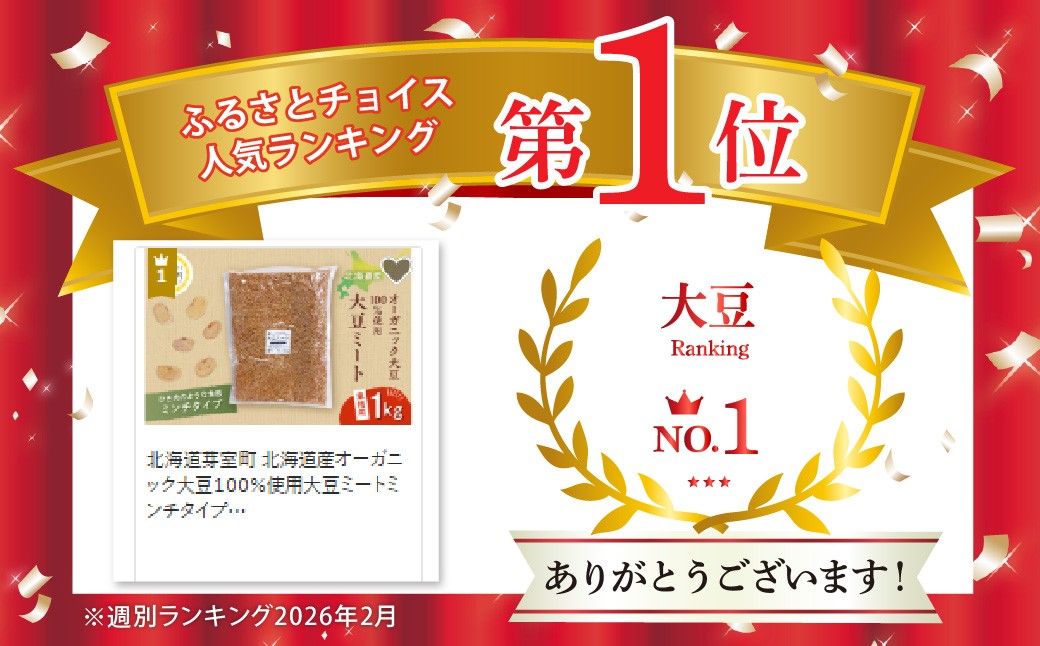 北海道芽室町 北海道産オーガニック大豆100%使用大豆ミートミンチタイプ業務用1kg me059-001c