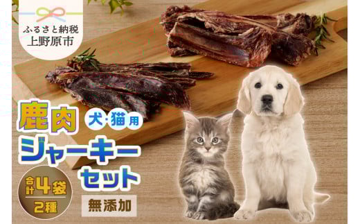 山梨県上野原市産 無添加鹿肉ジャーキー2種セット(鹿肉ジャーキー50g 鹿 アバラ骨 100g 各2袋)