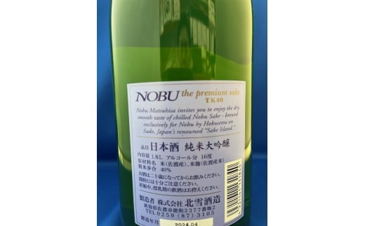 - 佐渡北雪謹製 世界各地に広がるレストラン「NOBU」の純米大吟醸1.8L 1本