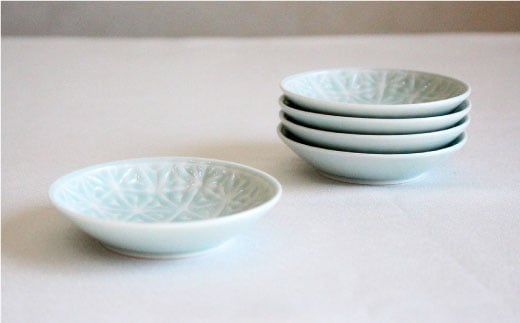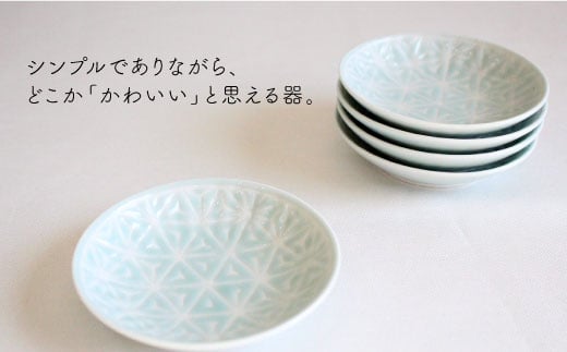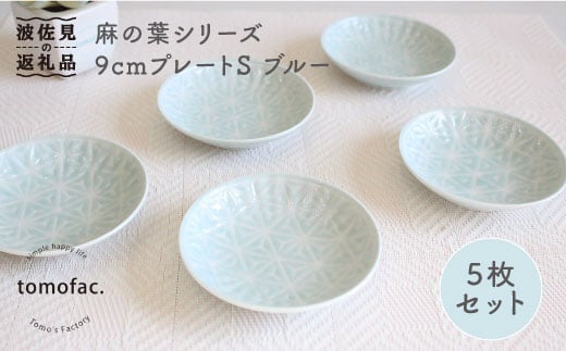 - 【波佐見焼】麻の葉シリーズ 9cm プレート S(ブルー)5枚セット 小皿 食器 皿 【陶芸ゆたか】 [VA84]