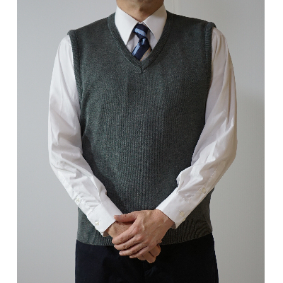 無地 メンズニット ベスト グレー LL寸 15200【1219202】